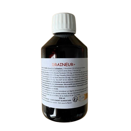 Posologie : 1 bouchon (10 ml) par jour à diluer dans une bouteille d'eau ou 1 c. à café dans un grand verre d'eau 2 fois par jour.